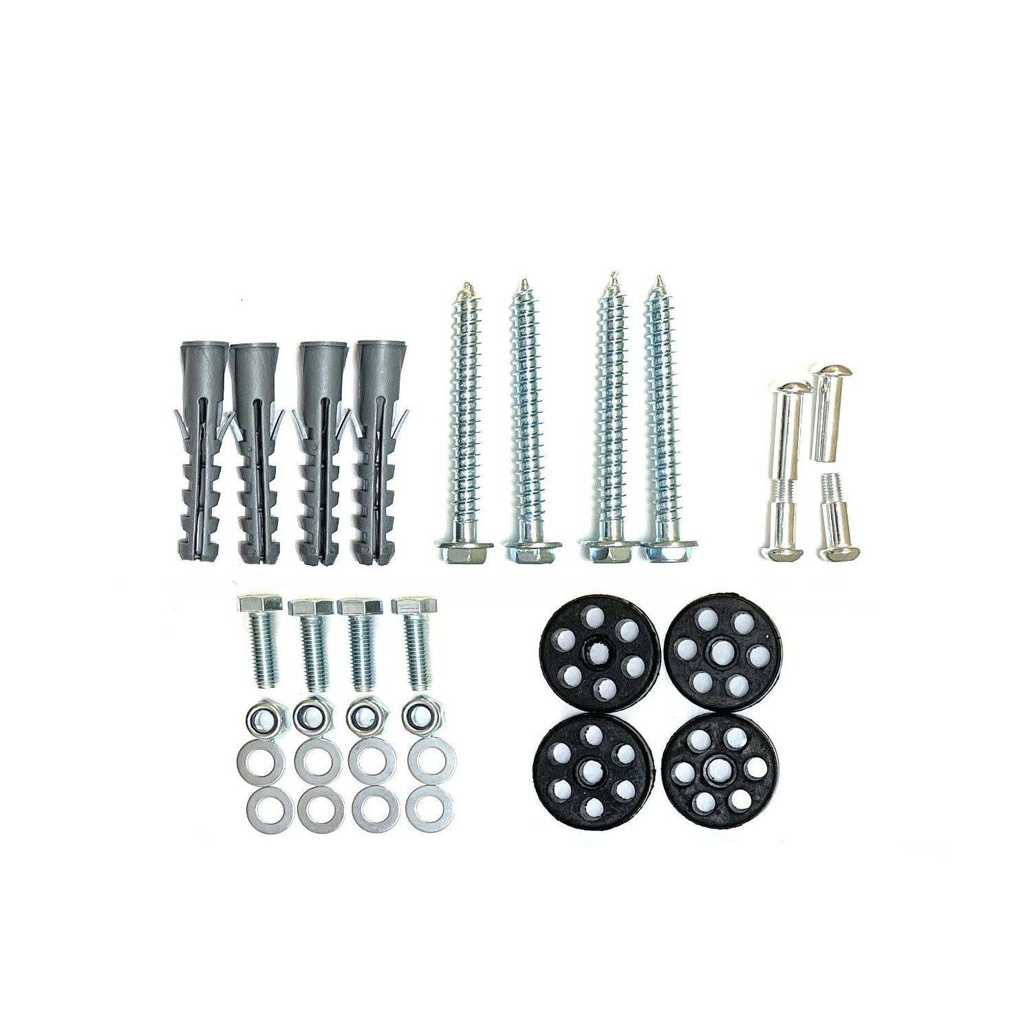 - Kit Completo Incluido: Contiene soportes, almohadillas de goma, tornillos, expansores, pernos y tuercas para una instalacion segura y estable.
