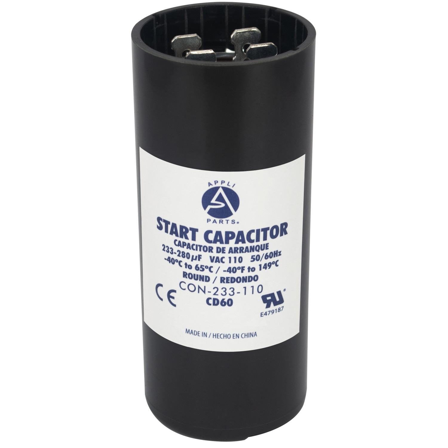 Appli Parts CON-233-110 Capacitor de Arranque 233-280 MFD (microfaradios) uF, 110-125 VAC. Universal para Motores Electricos, condensador de arranque de 3.7 cm de Diametro, 8.6 cm de Alto