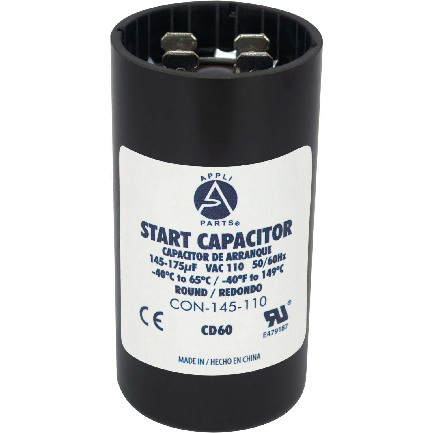 Appli Parts CON-145-110 Capacitor de Arranque 145-175 MFD (microfaradios) uF, 110-125 VAC. Universal para Motores Electricos, condensador de arranque de 3.7 cm de Diametro, 7 cm de Alto