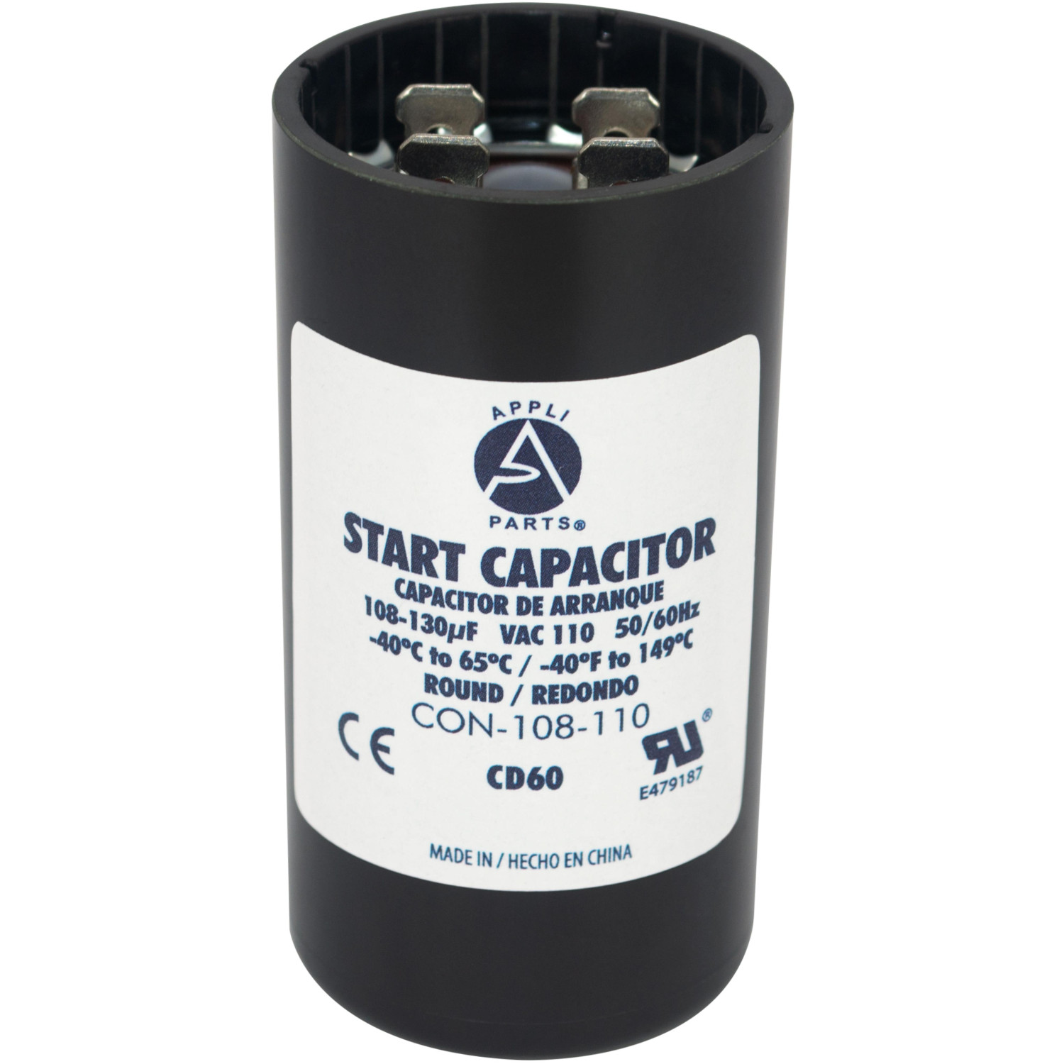 Appli Parts CON-108-110 Capacitor de Arranque 108-130 MFD (microfaradios) uF, 110-125 VAC. Universal para Motores Electricos, condensador de arranque de 3.7 cm de Diametro, 7 cm de Alto
