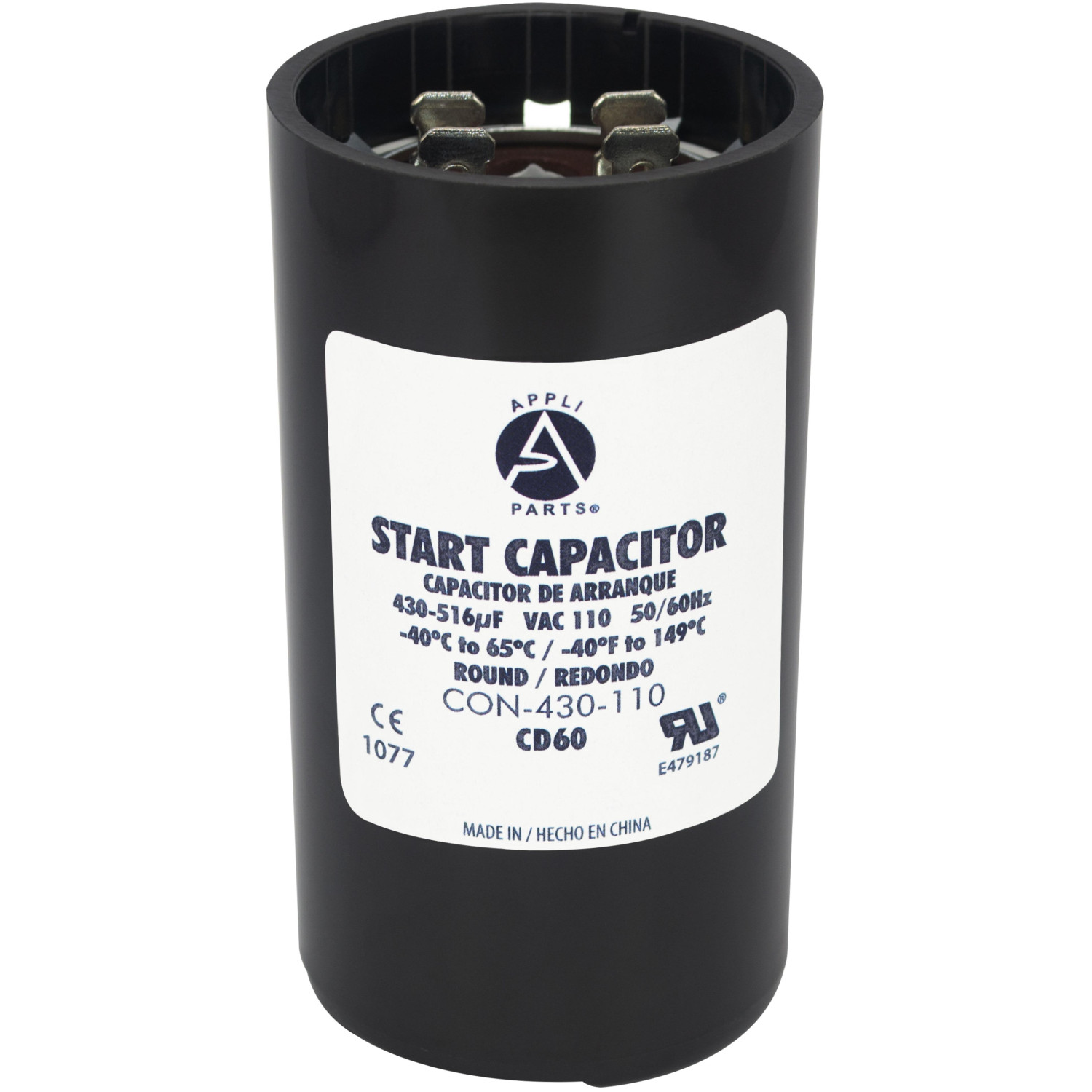 Appli Parts CON-430-110 Capacitor de Arranque 430-516 MFD (microfaradios) uF, 110-125 VAC. Universal para Motores Electricos, condensador de arranque de 4.6 cm de Diametro, 8.6 cm de Alto