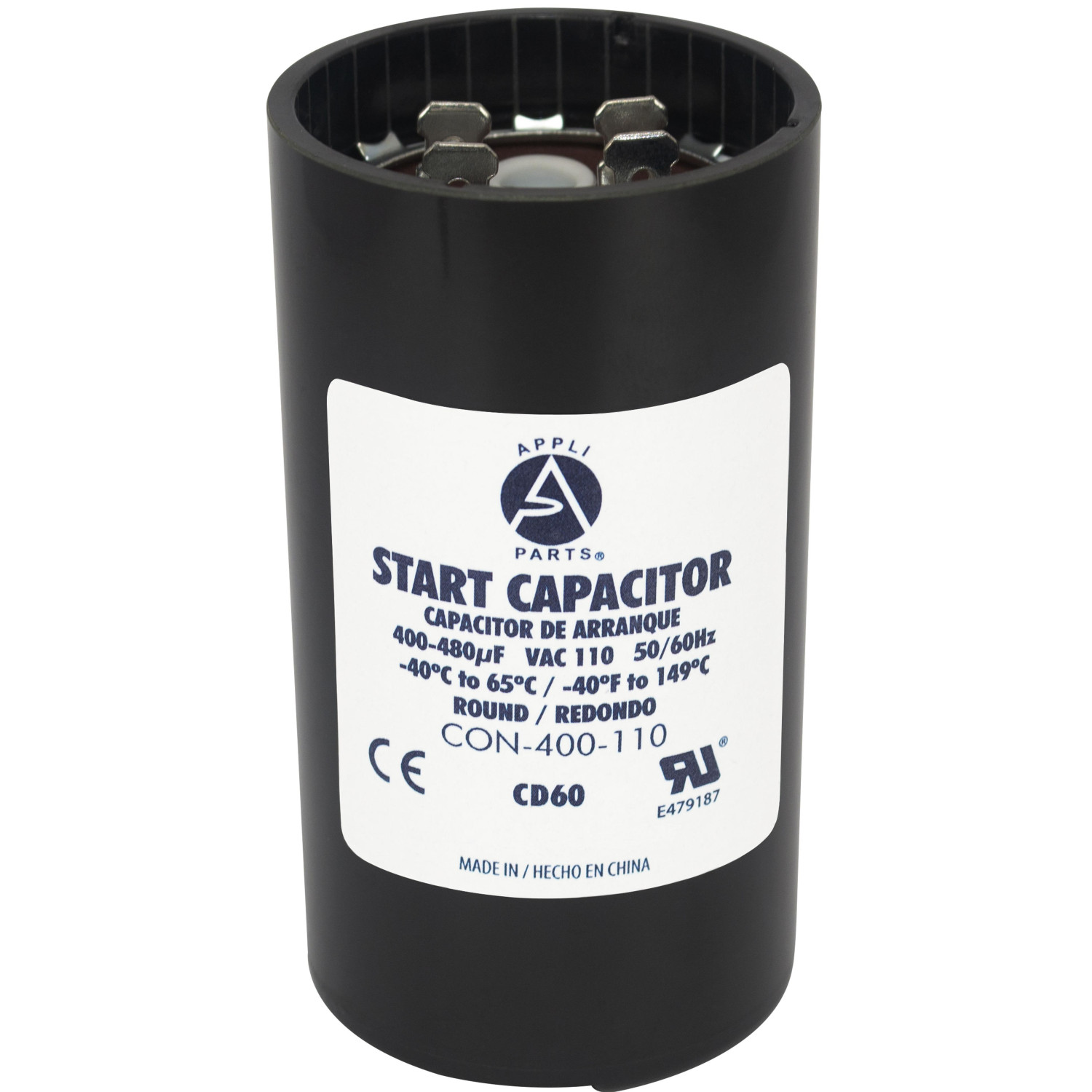 Appli Parts CON-400-110 Capacitor de Arranque 400-480 MFD (microfaradios) uF, 110-125 VAC. Universal para Motores Electricos, condensador de arranque de 4.6 cm de Diametro, 8.6 cm de Alto