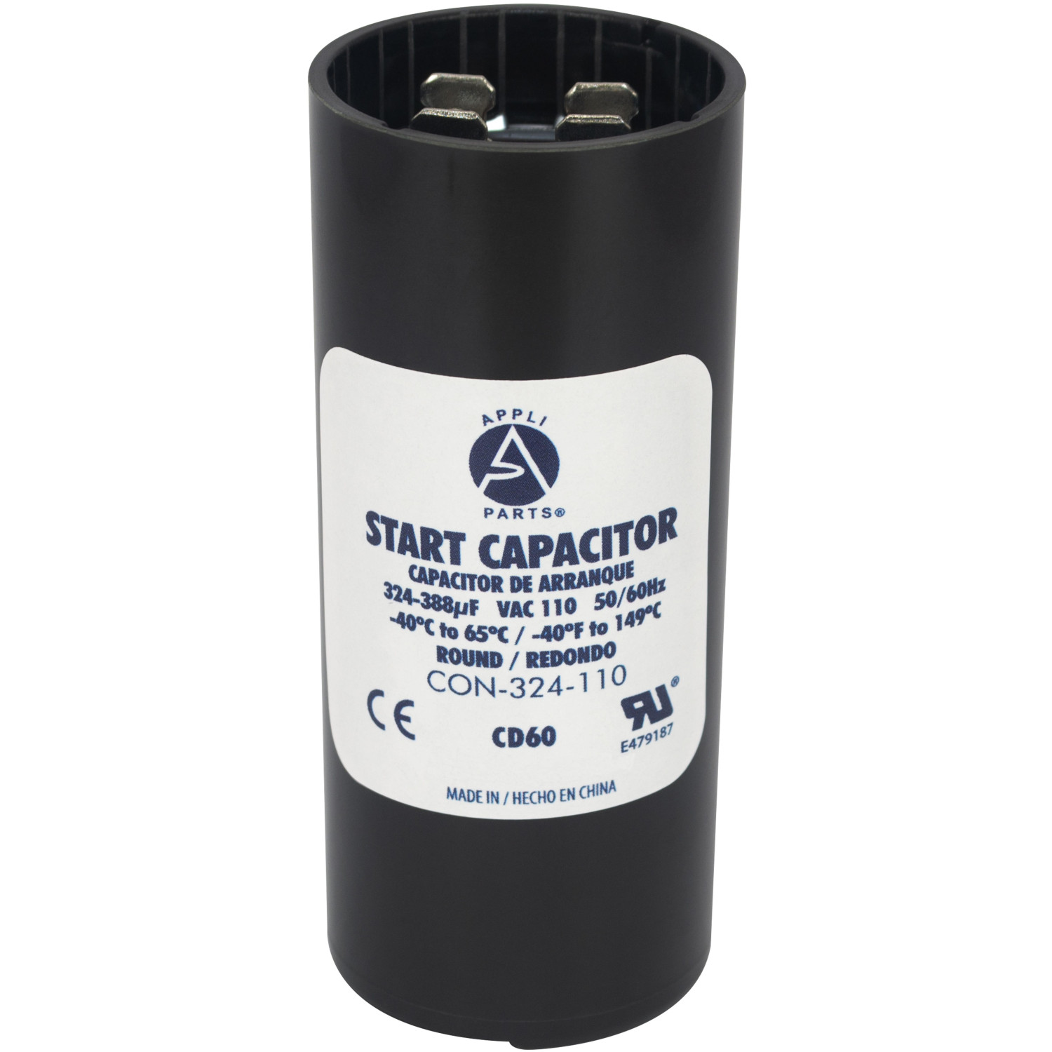 Appli Parts CON-324-110 Capacitor de Arranque 324-388 MFD (microfaradios) uF, 110-125 VAC. Universal para Motores Electricos, condensador de arranque de 3.7 cm de Diametro, 8.6 cm de Alto