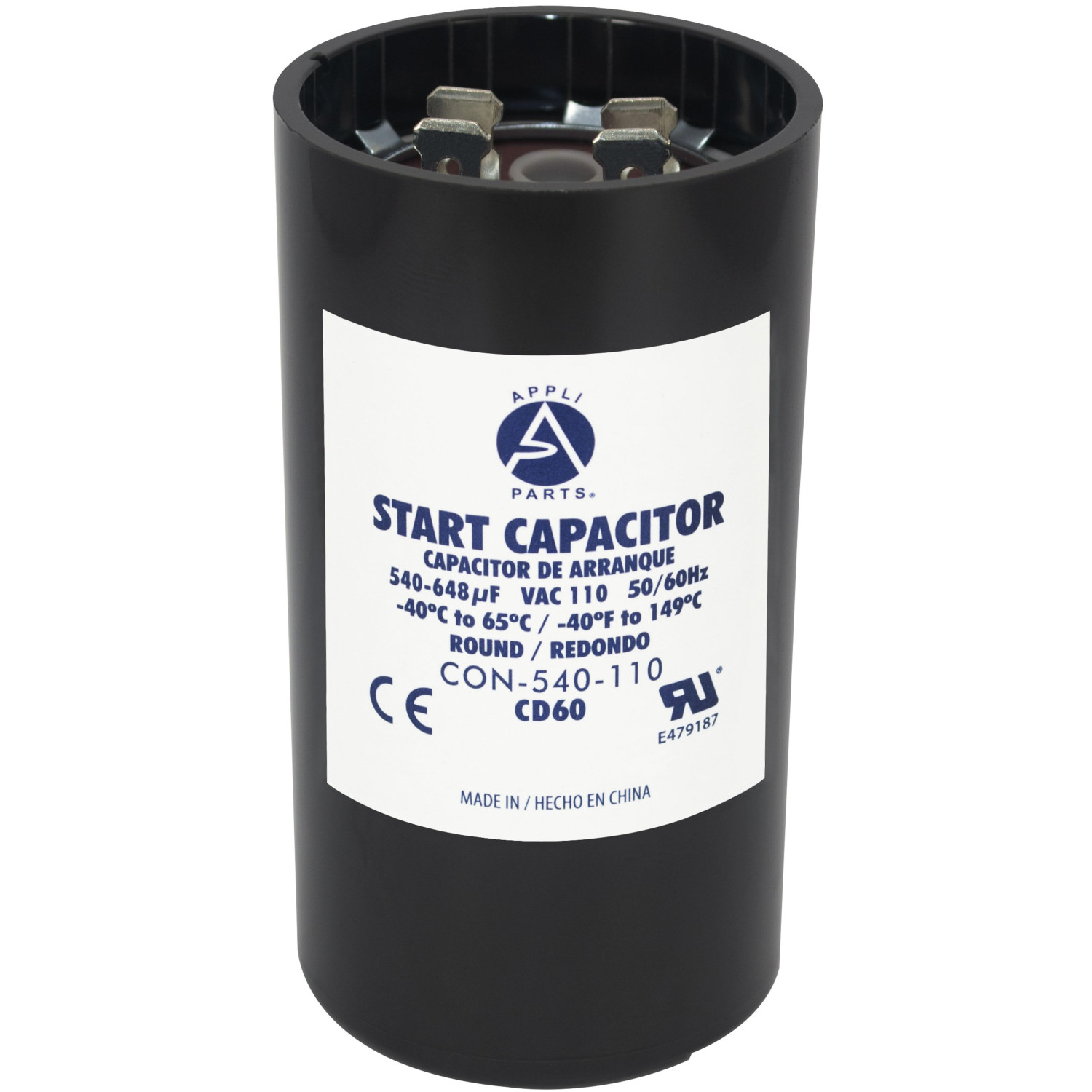Appli Parts CON-540-110 Capacitor de Arranque 540-648 MFD (microfaradios) uF, 110-125 VAC. Universal para Motores Electricos, condensador de arranque de 4.6 cm de Diametro, 8.6 cm de Alto
