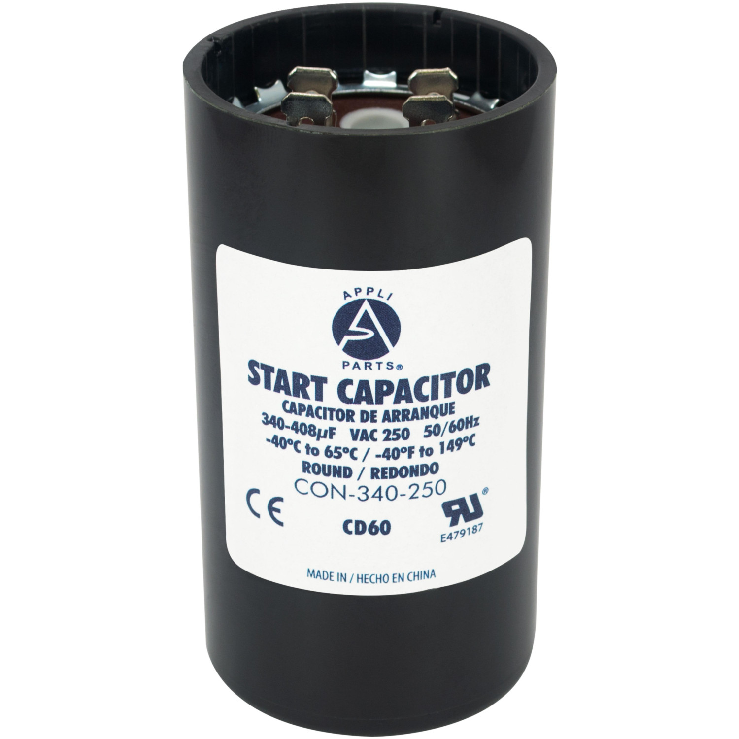 Appli Parts CON-340-250 Capacitor de Arranque 340-408 MFD (microfaradios) uF, 250 VAC. Universal para Motores Electricos, condensador de arranque de 4.6 cm de Diametro, 8.6 cm de Alto