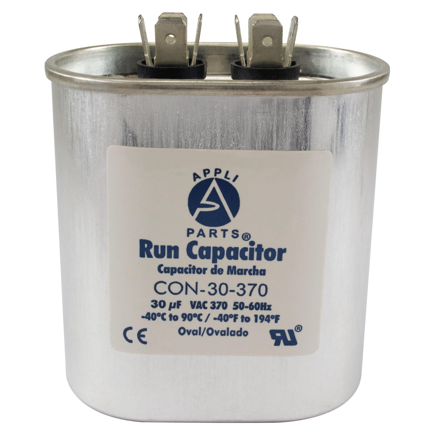 Appli Parts CON-30-370 Condensador Capacitor de Marcha 30 Mfd uF (microfaradios) 370VAC CBB65 Universal Aire acondicionado y otras aplicaciones Ovalado UL, 5.1cm Ancho 2.5cm Profundidad 7.6cm Alto