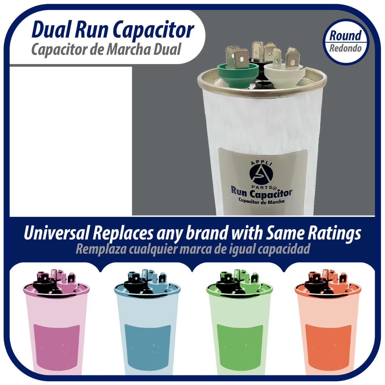 Appli Parts CON-45/10-450 Condensador Capacitor de Marcha 45+10 Mfd uF (microfaradios) 370VAC o 450VAC Universal para Aire acondicionado y otras aplicaciones Redondo UL, 13.7cm Alto 5.4cm Ancho