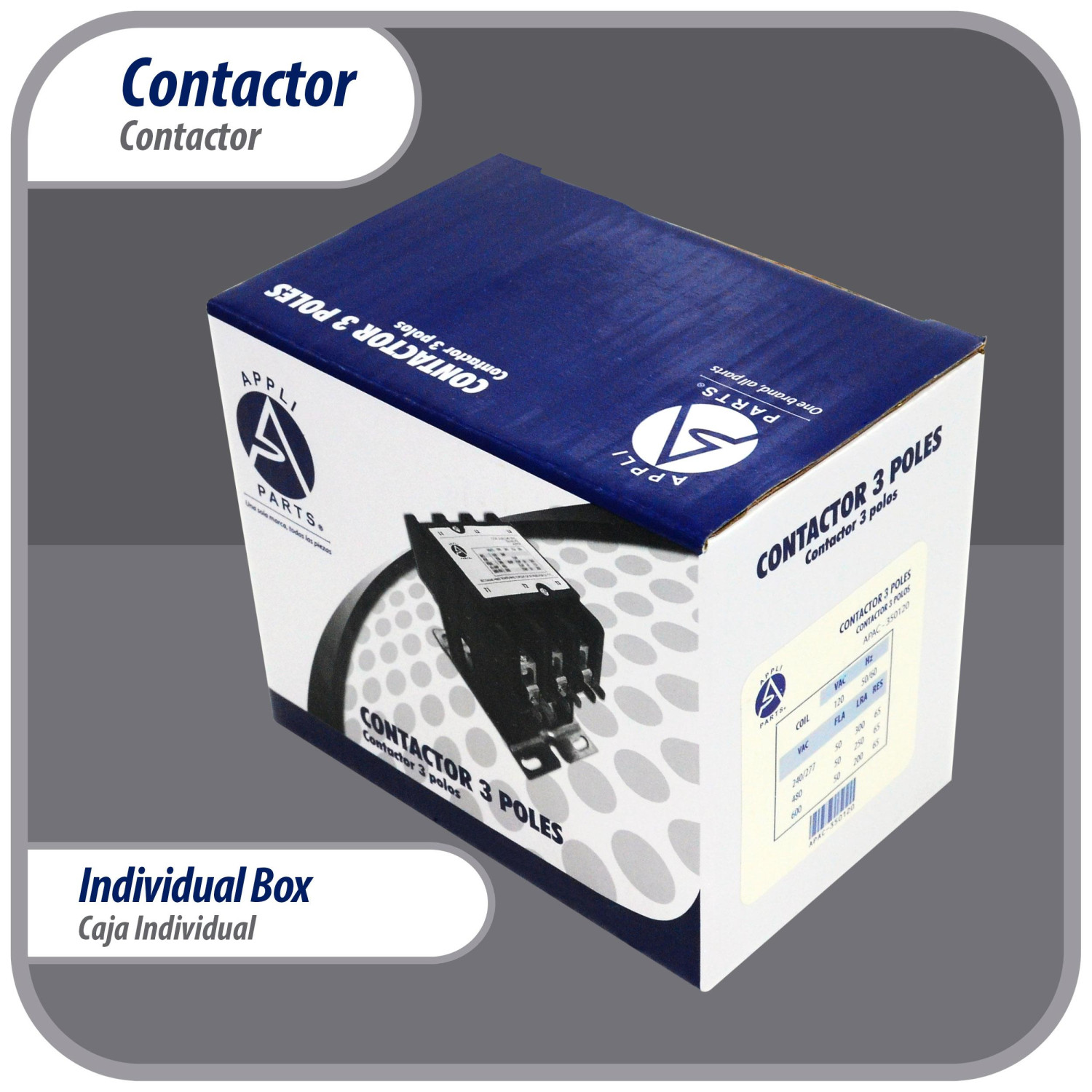 Aplicacion: Contactor 3 Polos 50A 120V bobina de trabajo pesado para aire acondicionado, bombas de calor, bombas de agua, sistemas de refrigeracion y motores electricos. Repuesto universal HVAC e industrial.