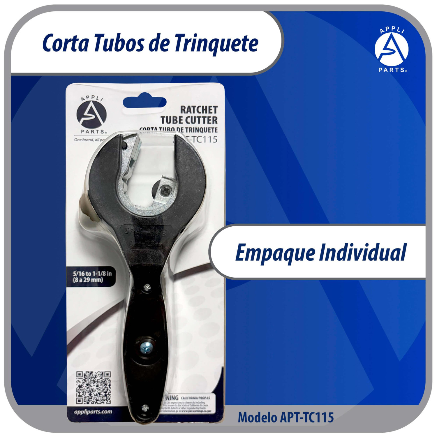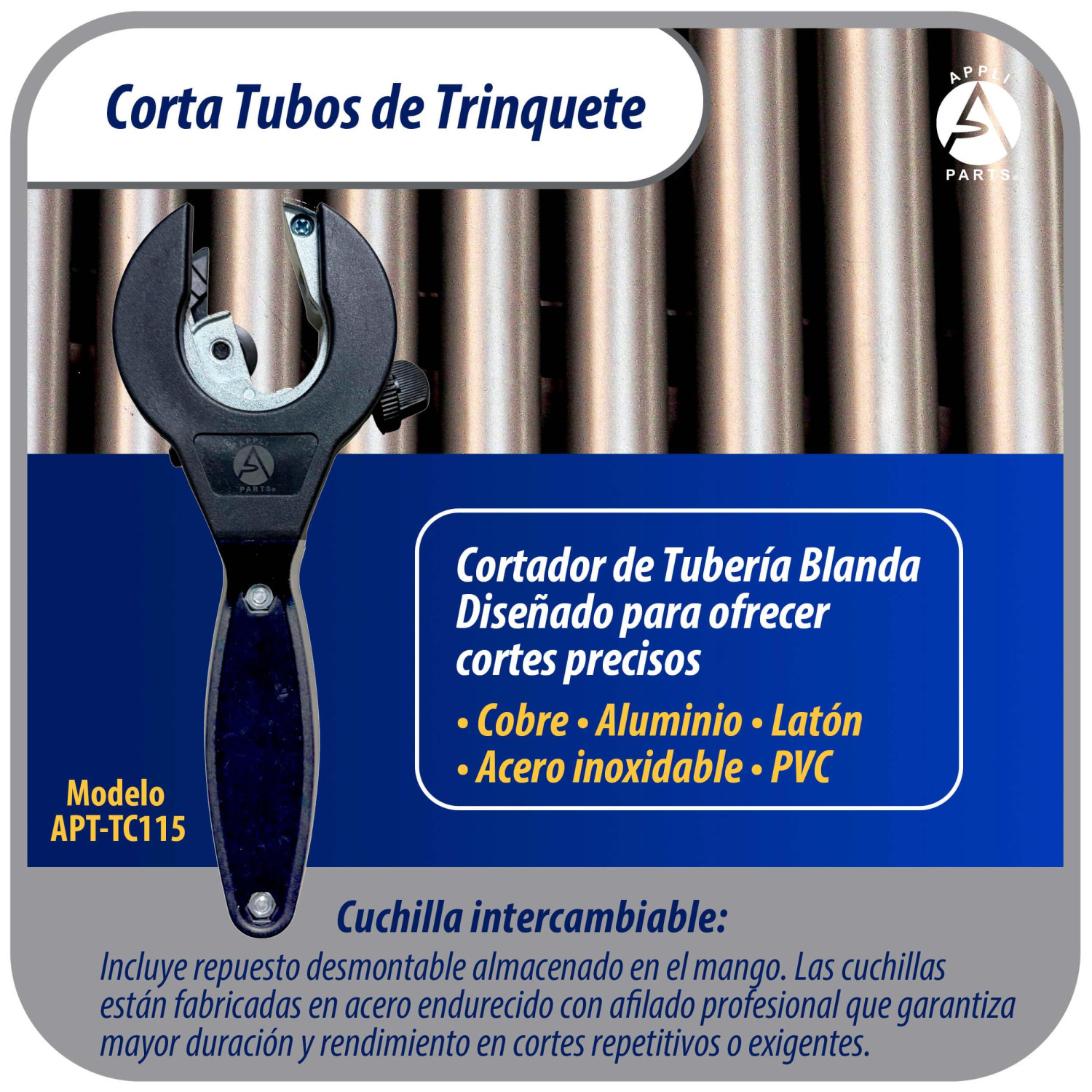Appli Parts APT-TC115 Cortador de tubos con trinquete 5/16 a 1-1/8 in (8 a 29 mm) para cobre, aluminio, laton, acero inoxidable y PVC con cuchilla de repuesto diseno ergonomico y duradero