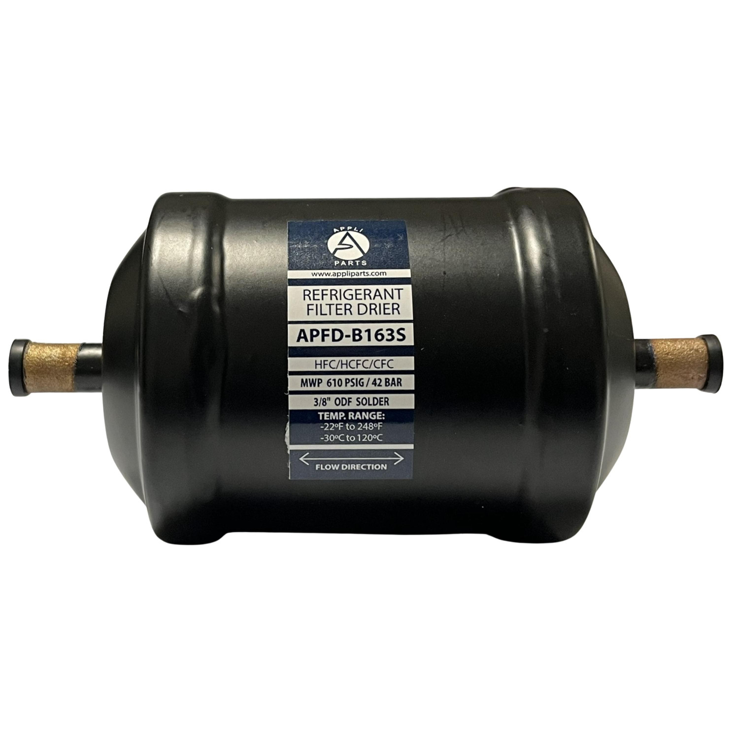 Appli Parts APFD-B163S Filtro Secador 3/8 pulg Bidireccional 163 ODF Soldable Universal para sistemas de Refrigeracion y Aire Acondicionado