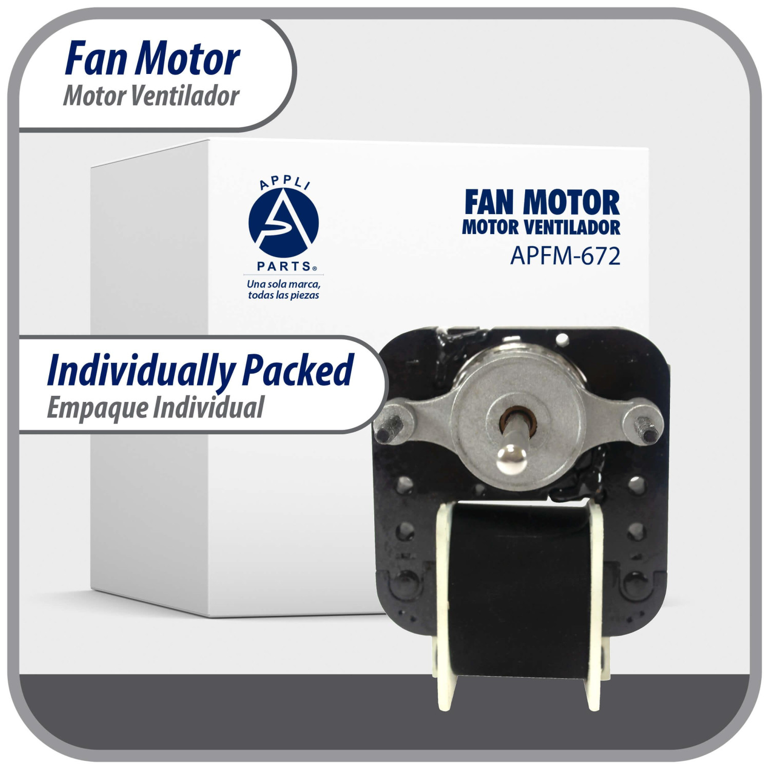 Appli Parts APFM-672 1/130 Hp Motor Ventilador, 220 V, 50/60 Hz, 3000 rpm, rotacion Reversible, Kit Universal, eje 3/16 pulg x 1-1/4 pulg largo, incluye 2 Aspa 4 y 5.5 pulg, UL, NUV-672, SM672
