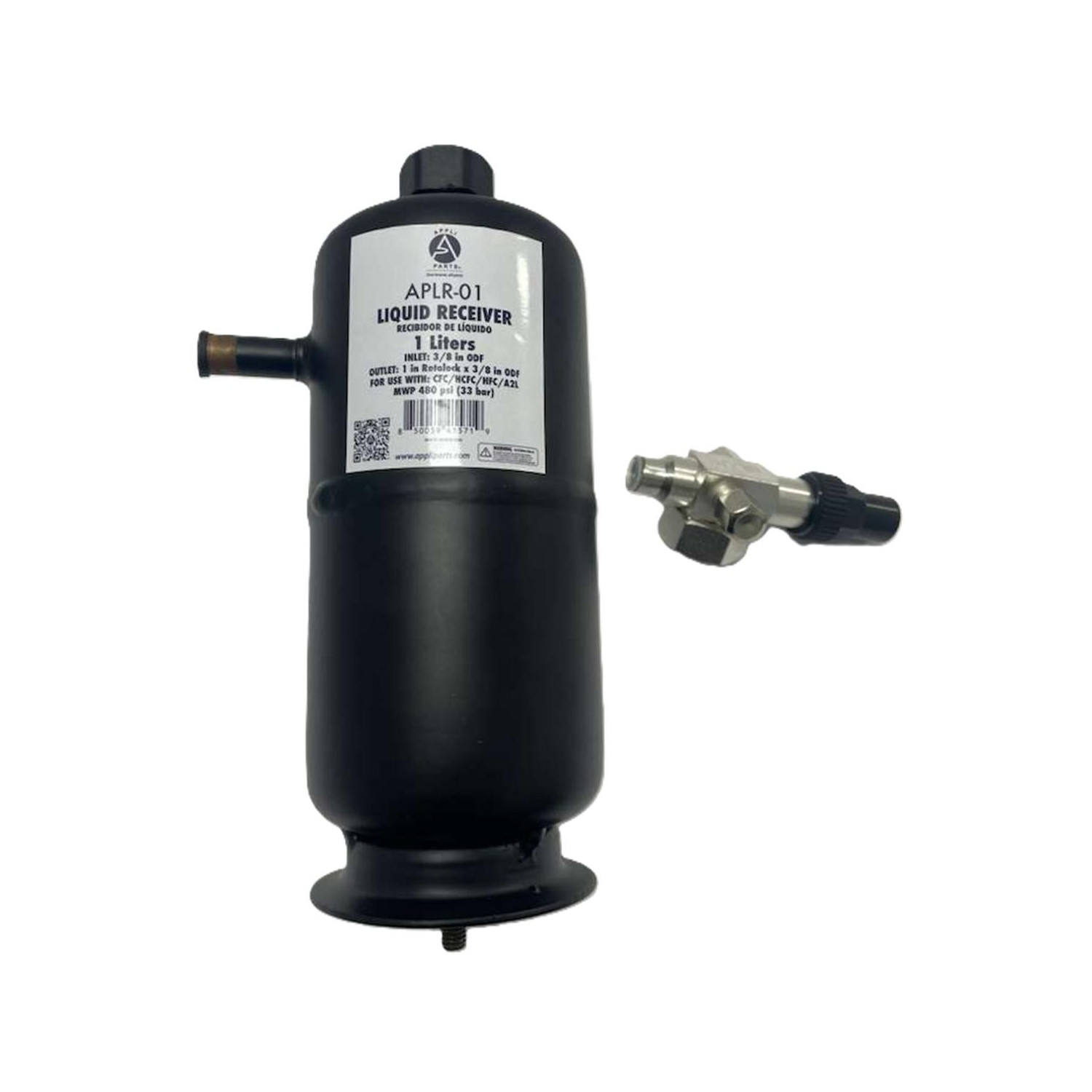 Appli Parts APLR-01 Tanque Recibidor de Liquido 1 Litros 1/4 pulg ODF Entrada x 1/4 pulg ODF Salida Conexion Rotolock 1 pulg SAE x 1/4 pulg ODF
