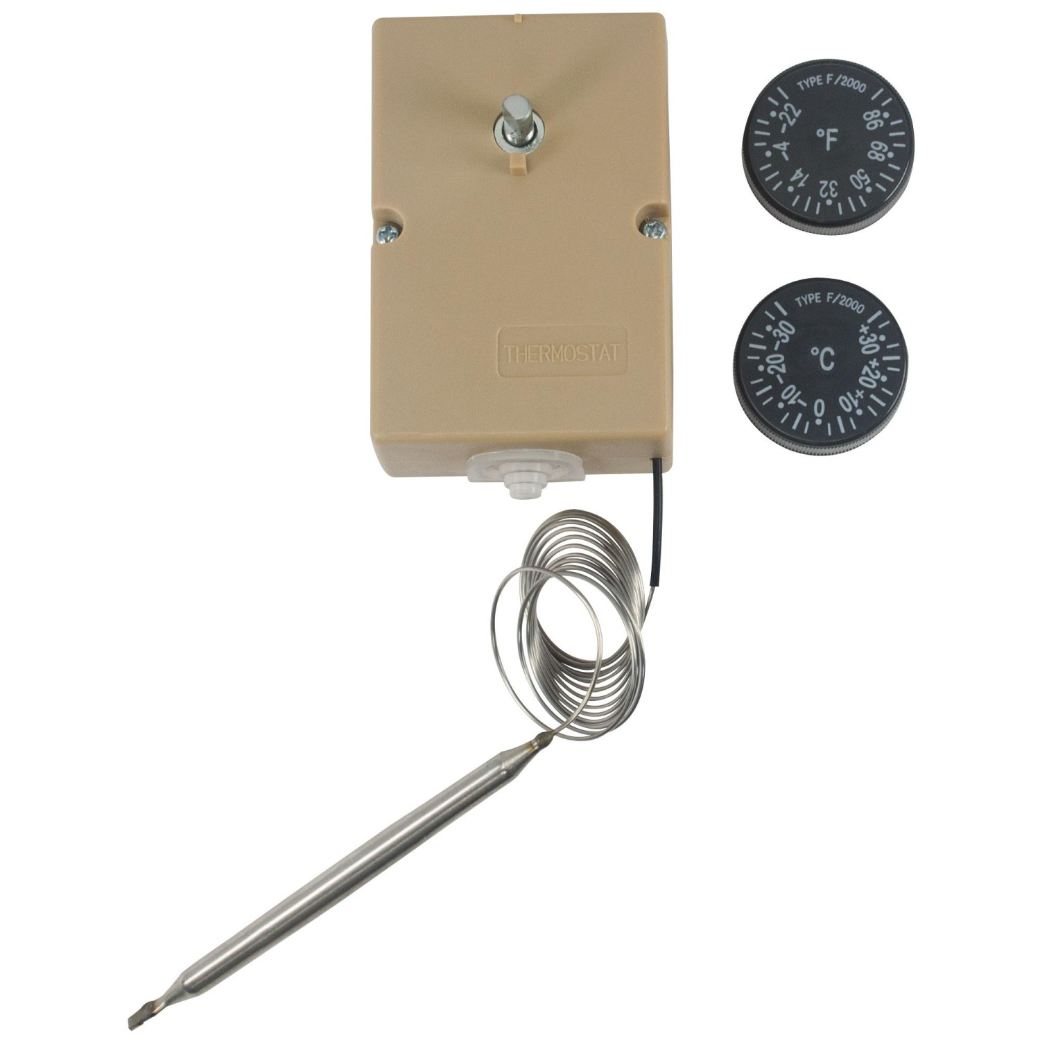 - Especificaciones: con Temperatura Minima de -35C (-31F) y temperatura maxima de +35C (95F), con tubo capilar 1200mm (47.25in), incluye 2 diales en Centigrado y Fahrenheit