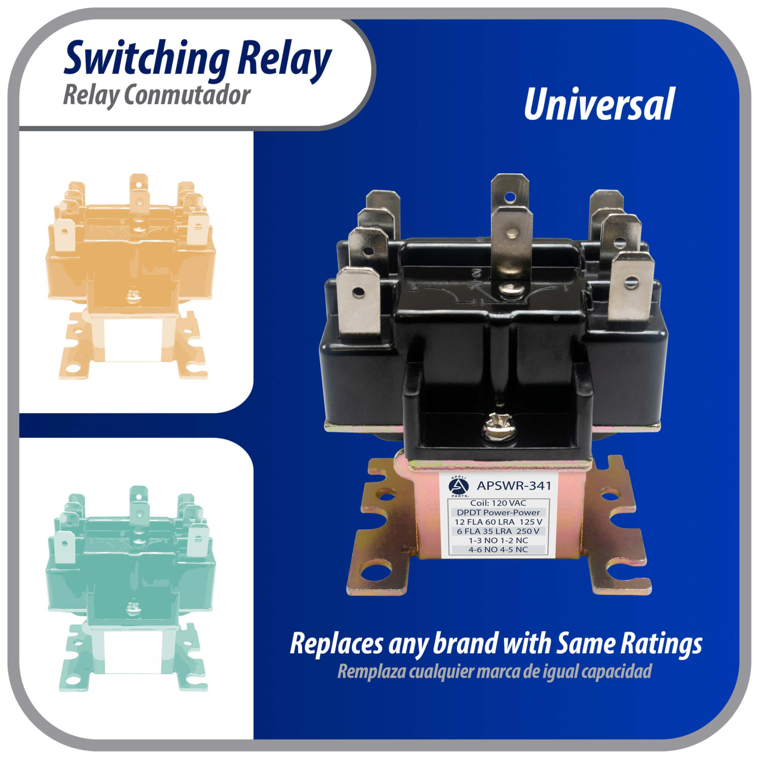 - Universal: Reemplaza cualquier rele de conmutacion con las mismas especificaciones para trabajar con cualquier marca de motor u otras aplicaciones electricas donde sea necesario