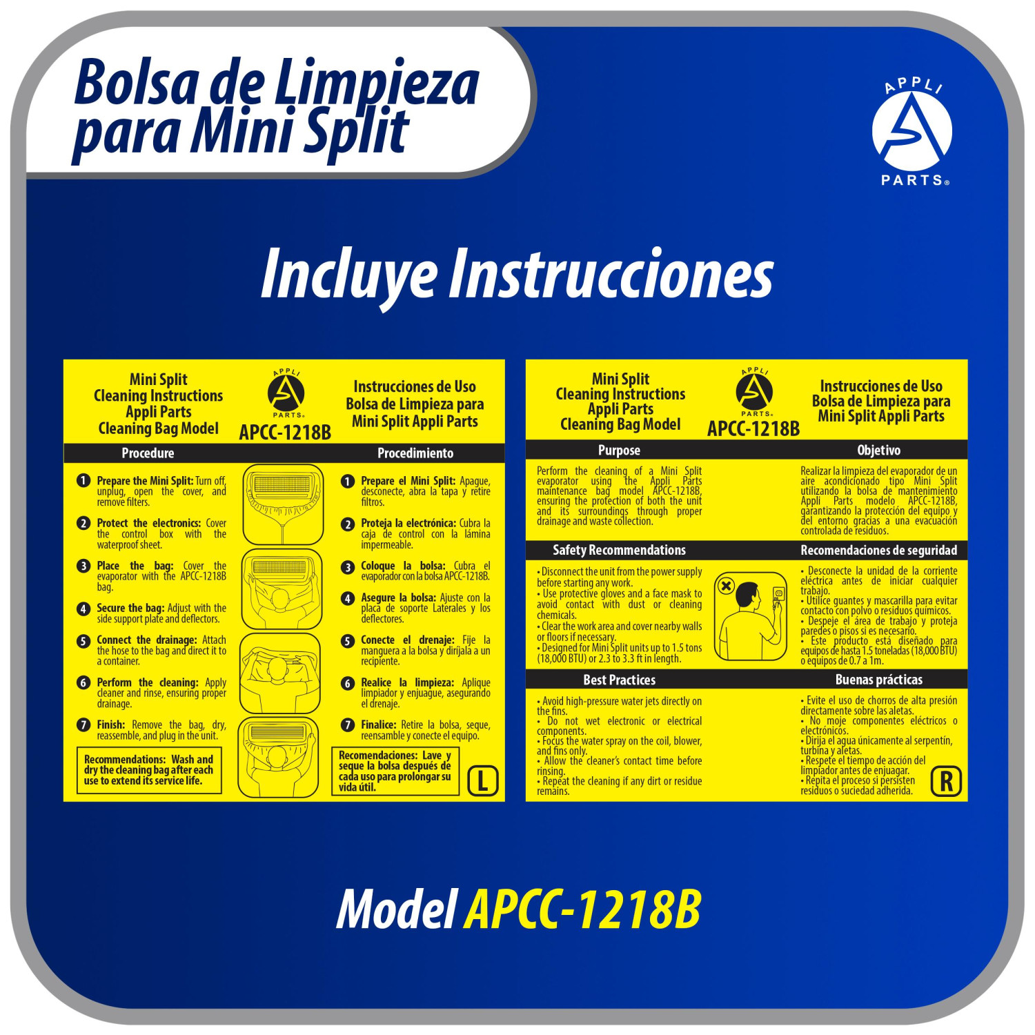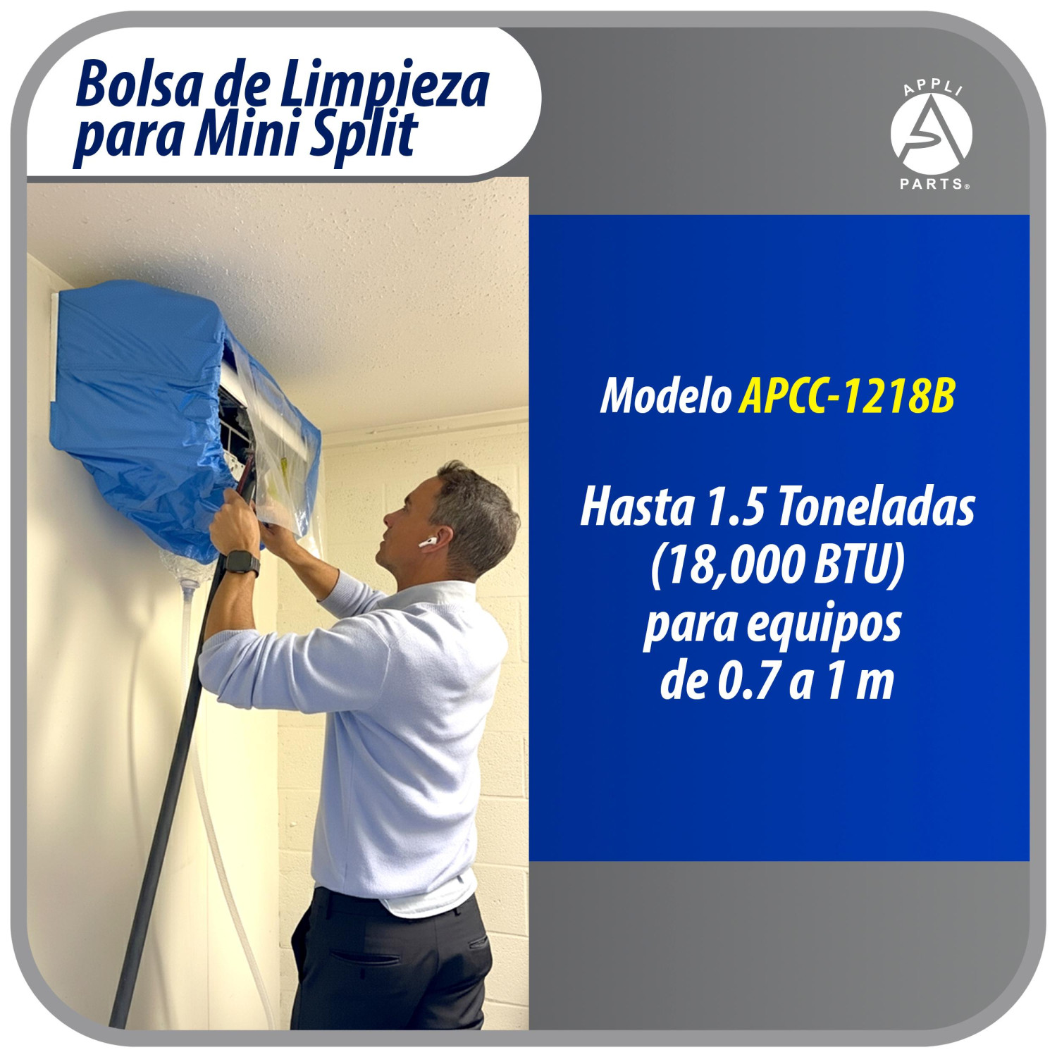 Appli Parts APCC-1218B Bolsa de Mantenimiento o Limpieza Mini Split de 1 - 1.5 Toneladas (18.000 Btu) para equipos de 0.7 a 1 m, Impermeable, manguera de 2.8 m para drenaje. Remplaza 532 533 562 572