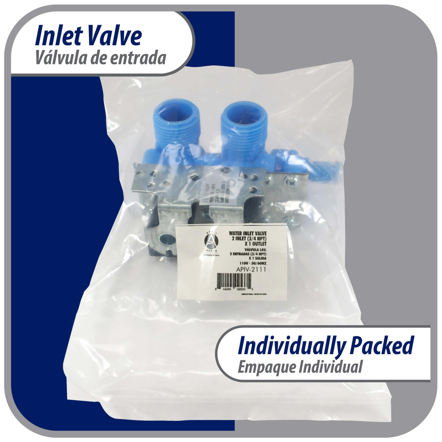 Appli Parts WH13X81 Valvula entrada de agua para lavadora 2 Entradas de 3/4 NPT y 1 Salida 1/2 conexion rapida 110-120V 50/60Hz remplazo universal lavadoras General Electric y otras marcas APIV-2111